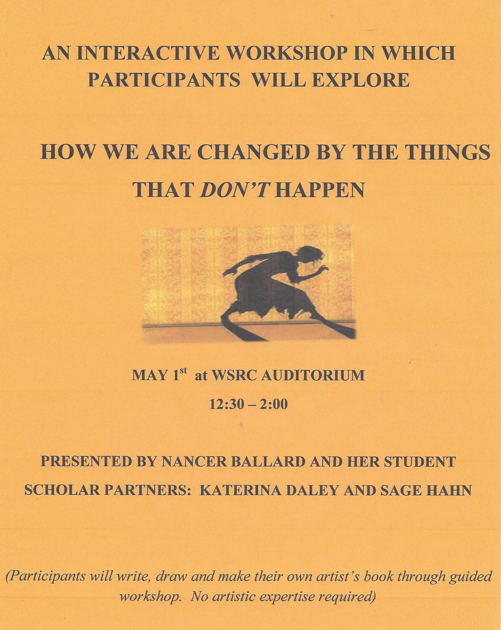 - “How We Are Changed by the Things That Don’t Happen; Explorations in Literature and Life” for Women’s Studies Research Center, Brandeis University.